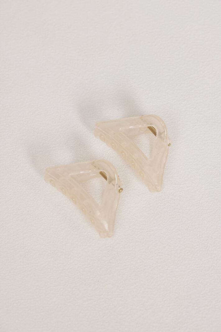 זוג קליפסים לשיער עשויים פלסטיק.